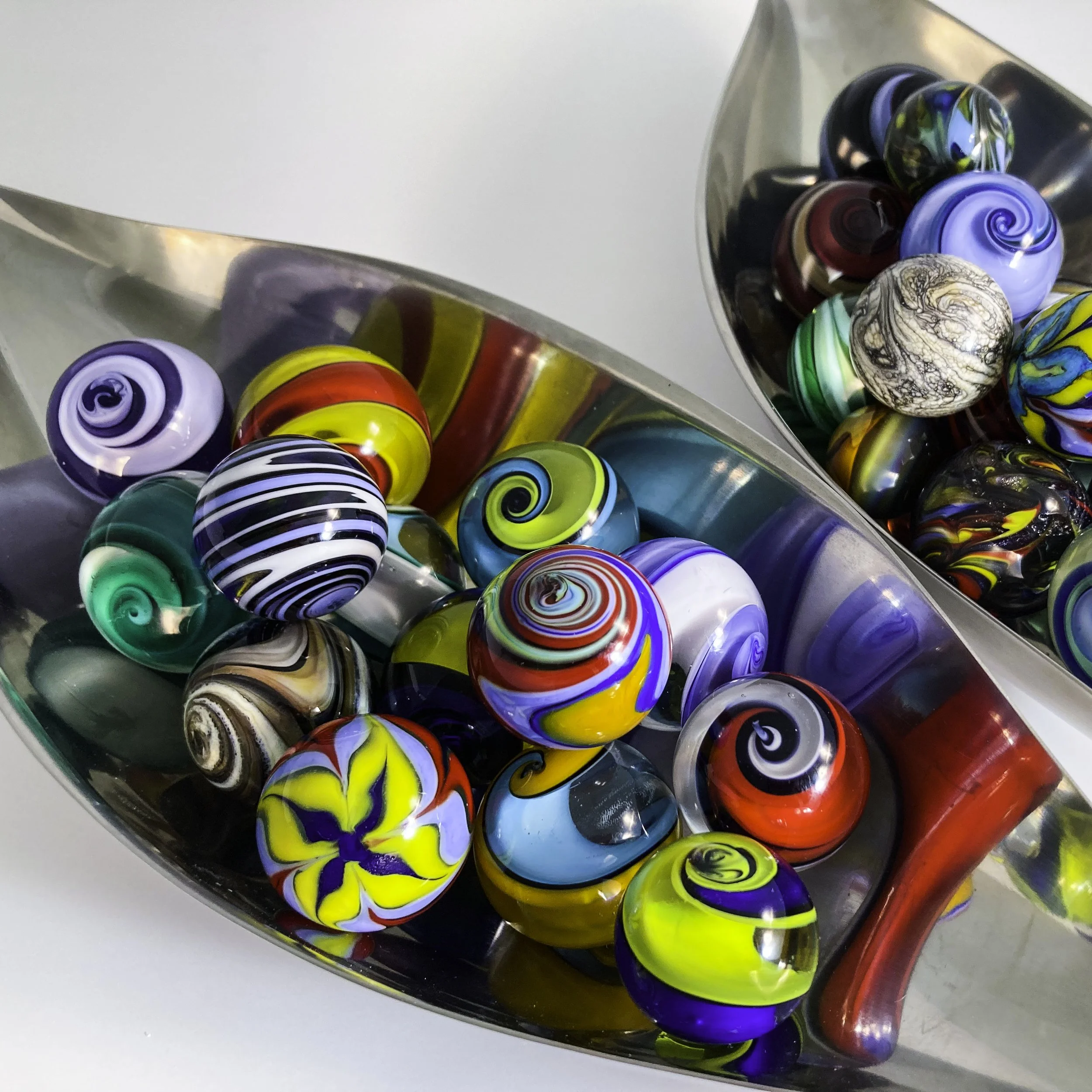 That’s when her husband gave her the surprise gift of a class in glass beadmaking. Carolyn took to it immediately. That was 20-some years ago, and she is still in love with lampworking, the historic term for glass work where a torch is used to melt and shape glass.
